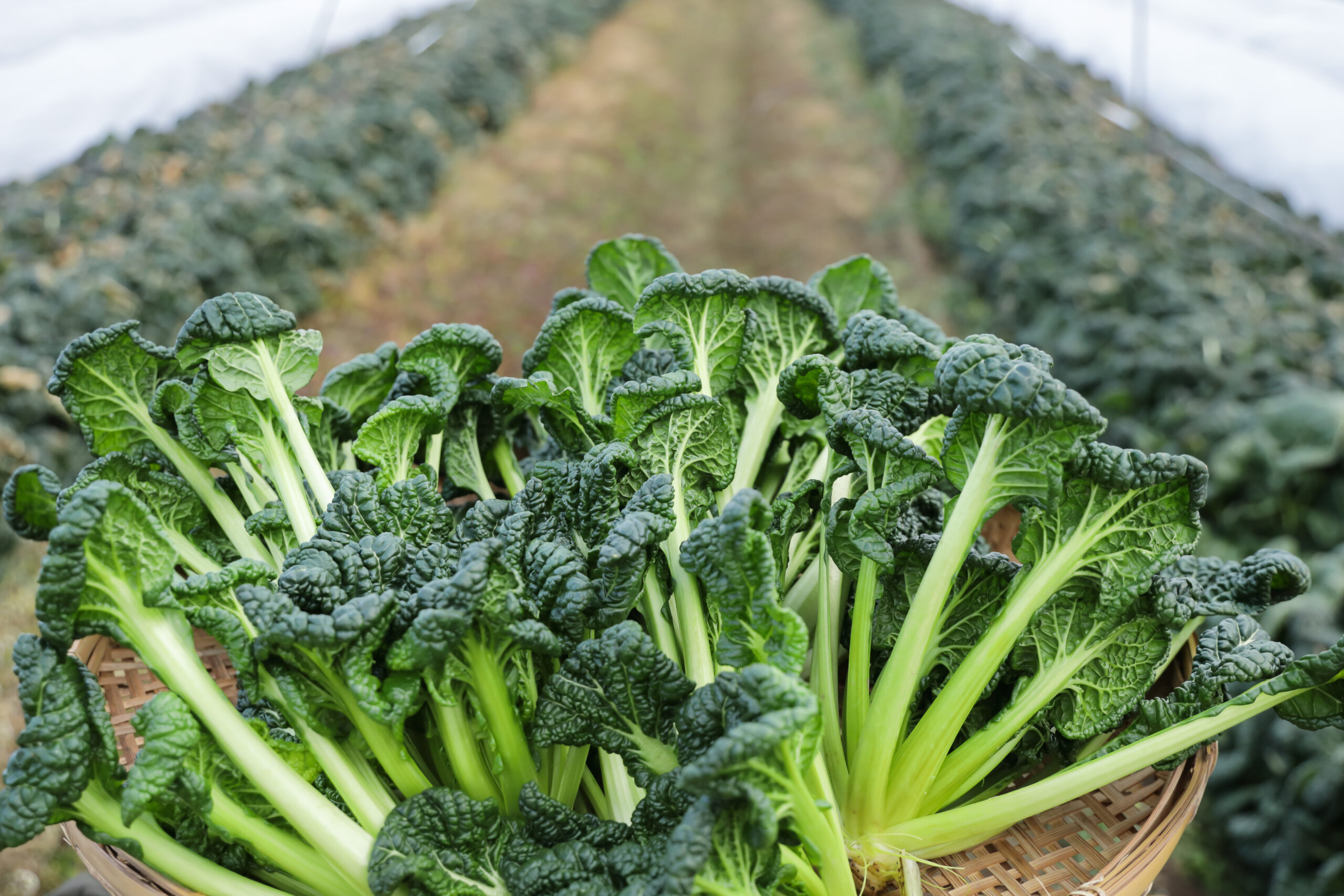 寒さに強く、冬場には霜に当たることで、甘味が増します。甘味の中にほのかな苦味が感じられ、葉は柔らかく、茎はシャキシャキとした食感で、さまざまな調理方法で食べることができます。