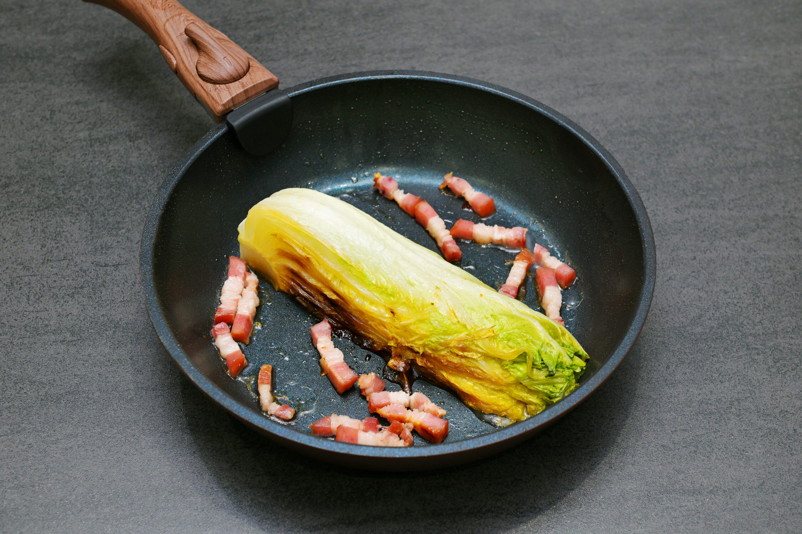白菜は、焼き目を付けたあとに蒸し焼きにすることで、香ばしさとトロッとした食感が味わえます。